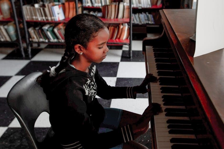 Beyond the book, explore Alfred’s website, YouTube tutorials, and interactive piano apps for practice. These tools reinforce concepts and make learning fun!