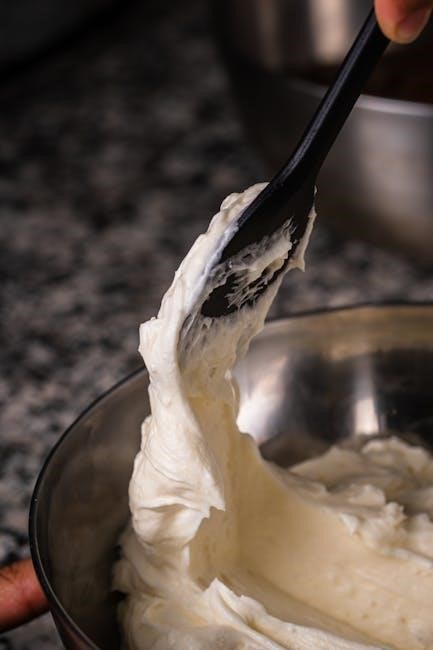 Another challenge is ice crystal formation, addressed by emphasizing rapid freezing and proper storage. Guides recommend pre-chilling the base mixture for at least two hours, and sometimes overnight, to accelerate the process. If the mixture doesn’t freeze, PDFs advise checking the freezer bowl’s temperature and mixer speed.